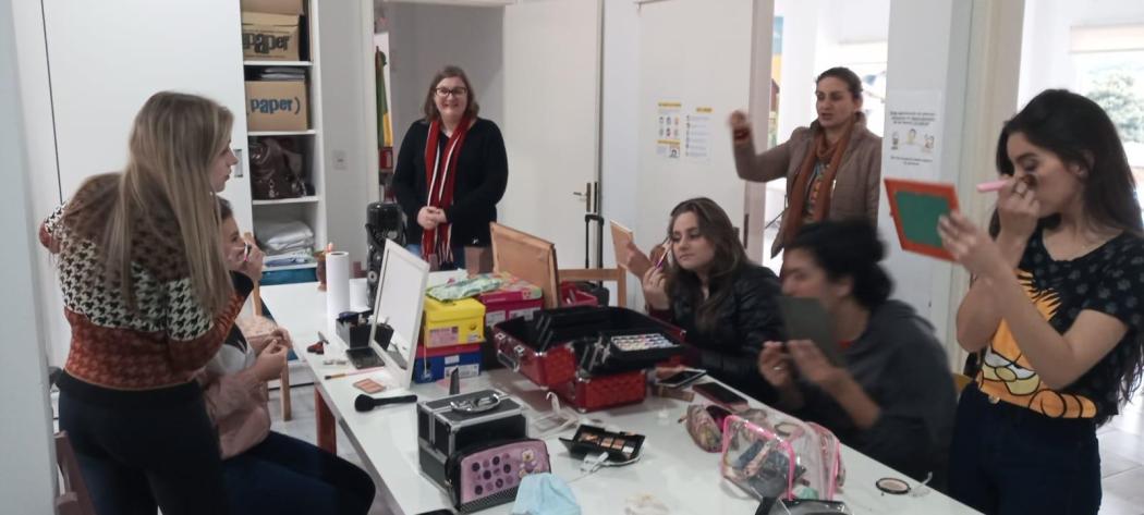 Semana passada foi realizado mais um encontro do grupo de convivência e fortalecimento de vínculos de adolescentes, na sede do Centro de Referência da Assistência Social (CRAS) de Progresso. Nesta oportunidade, foi realizada Oficina de Maquiagem, ministrada pela profissional Karina Martini, com intuito de trabalhar o auto cuidado. O grupo de adolescentes é aberto a participação de toda a comunidade, sendo que os encontros ocorrem de forma quinzenal, organizados pelas profissionais da equipe técnica do CRAS.