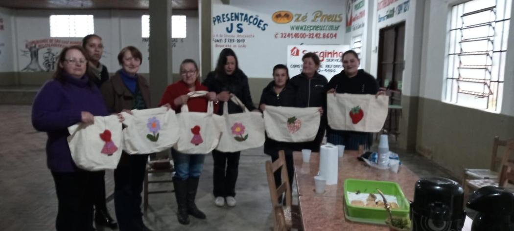 Na tarde da terça (21) o grupo de mulheres do CRAS se reuniu na comunidade de São Luis, onde as participantes orientadas pelas Artesãs, Rosângela Tedeschi e Karina Ramos, confeccionaram bolsas de patchwork. Em decorrência da pandemia os encontros só vão ocorrer uma vez em cada comunidade neste ano. Para o próximo ano serão organizados encontros de forma mensal em todas as comunidades do interior do município. Interessadas em participar dos grupos de mulheres, devem procurar o CRAS ou Secretaria de Assistência Social e Cidadania para mais informações.