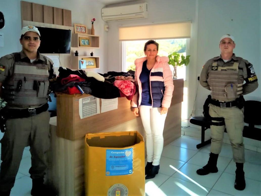 A Secretaria de Assistência Social e Cidadania recebeu novamente doações de agasalhos recolhidos pela Brigada Militar do Município através do tenente Everton Oliveira.