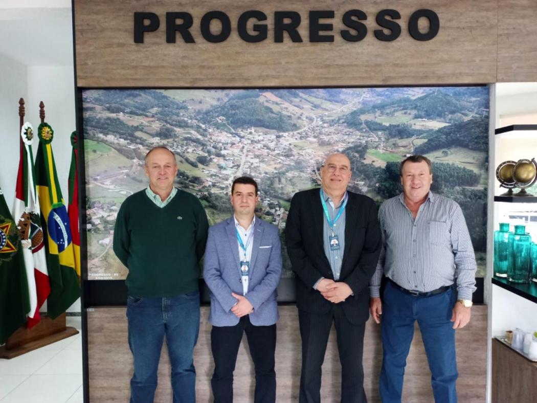 Na última quarta (14) o prefeito Paulo Gilberto Schmitt e o vice Luiz Paulo Manini. Receberam a visita do gerente geral da agência Progresso Conrado Oliveira e do superintendente da região centro do Banrisul Clodemar Borrasca, que responde por 87 municípios e fez uma visita de cortesia para saber da satisfação da Administração Municipal com os serviços prestados. Schmitt agradeceu a visita e aproveitou para pedir apoio da instituição para a próxima Expofeira, que ocorre em novembro de 2023.