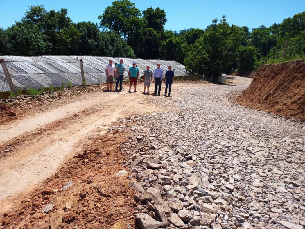 Nesta quarta-feira (14), o prefeito de Progresso, Paulo Gilberto Schmitt e o secretário municipal de Obras, Viação e serviços públicos, Alberto Brancher, estiveram verificando o andamento dos trabalhos de limpeza e alargamento da estrada de Xaxim. Também foi realizada a alteração no acesso que corta a propriedade de Airton Carniel, por onde passam diversos caminhões que buscam a produção dele e de outros sete aviários e dois chiqueirões de moradores locais. Carniel salientou que, além de melhorar a qualidade de vida da família que não precisa mais conviver com a poeira dentro de casa, a estrada ficou melhor e mais larga, facilitando as manobras dos veículos. O serviço também foi acompanhado pelo vereador Marino João Bozzetti, que representa aquela localidade, junto com outros vizinhos beneficiados pela obra. O prefeito salientou que diversas outras localidades devem receber este tipo de melhoria, especialmente para facilitar o escoamento da produção e melhorar a qualidade de vida do produtor rural.