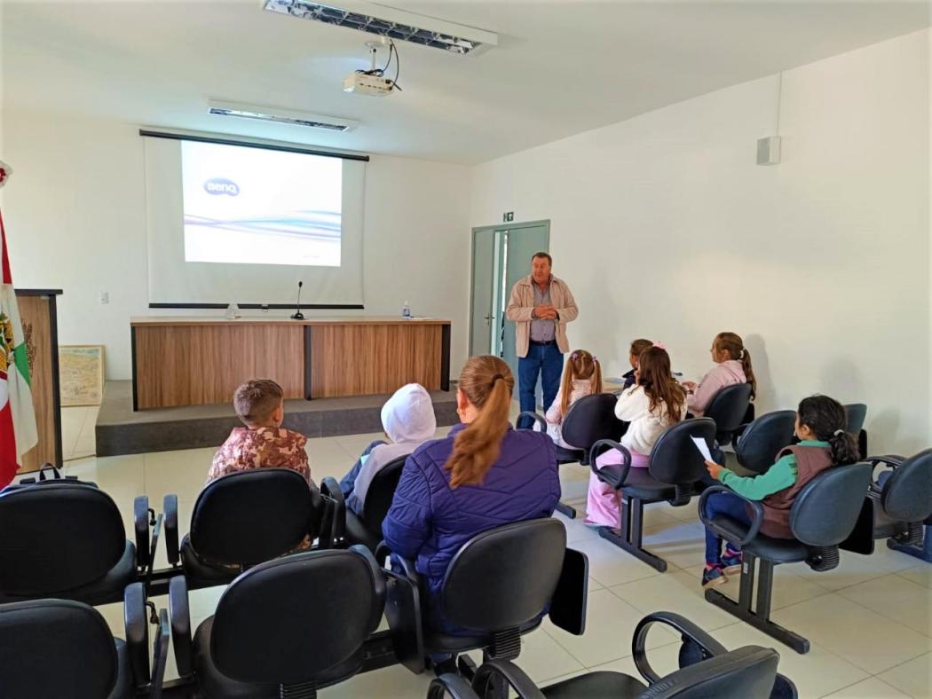 Nesta quarta-feira (05) o vice prefeito Luiz Manini recebeu uma turma de alunos do 3º ano da escola Fidêncio Battisti, participantes do Programa União Faz a Vida, realizado em parceria com o Sicredi. Orientados pela professora Mara Regina Giovanella de Brum, vieram conhecer a estrutura administrativa do Poder Executivo e saber quais serviços são encontrados na prefeitura.