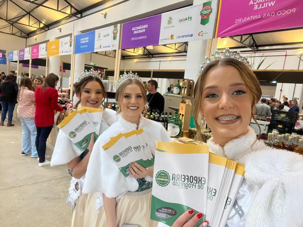 s soberanas de Progresso Kamily Groff Martini, Maria Gabriela Dermarchi Zanoni e Caroline Piffer, já estiveram na SantaFlor, em Santa Clara do Sul, divulgando a 4ª Expofeira e 3º festival de Progresso com humor, que ocorrem de 30 de novembro a 03 de dezembro, no Centro da cidade. Além de expositores do comércio, indústria e serviços, também haverá exposição de máquinas e veículos, feira da agroindústria familiar e artesanato, além de shows e atrações culturais. Durante a programação, haverá diversas atrações, incluindo o Show de Humor com Edegar Maróstica; Cris Pereira com “Standup Bagual do Gaudêncio”; Baile com a Banda Perola Negra; Os Bertussi e Banda Choppão. Todas as atrações tem ingresso grátis. A programação completa pode ser conferida emwww.expofeiraprogresso.com.br